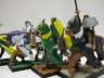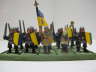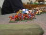 Interessant sind für mich erstmal die grundlegenden Unterschiede in unseren Bemalstilen. Die Armee meines Bruders ist eine echte High-Fantasy-Armee. Die Farben sind sehr sauber und die Ritter sind richtig bunt und haben alle eine unterschiedliche Heraldik. Das Fussvolk sieht erbärmlich aus, wie es sich für Bauern gehört.